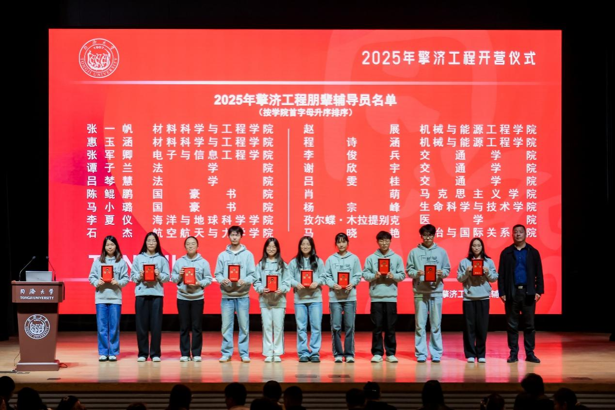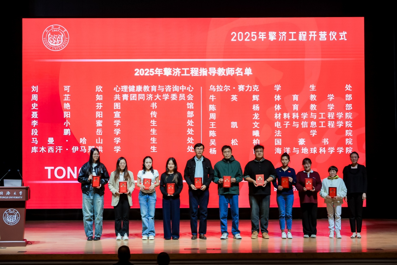 党委学生工作部总结了2024年“擎济工程”培养成效,并详细解读了2025年培养计划,为新营员明晰成长路径。“擎济工程”老生代表石杰分享了参与培养的成长感悟与收获。新生代表张琳珂表达了对“擎济工程”的期待及自我提升的愿景。仪式上,“2024年擎济工程优秀指导教师”“2024年擎济工程优秀朋辈辅导员”获颁荣誉证书,“2025年擎济工程指导教师”“2025年擎济工程朋辈辅导员”获颁聘书。